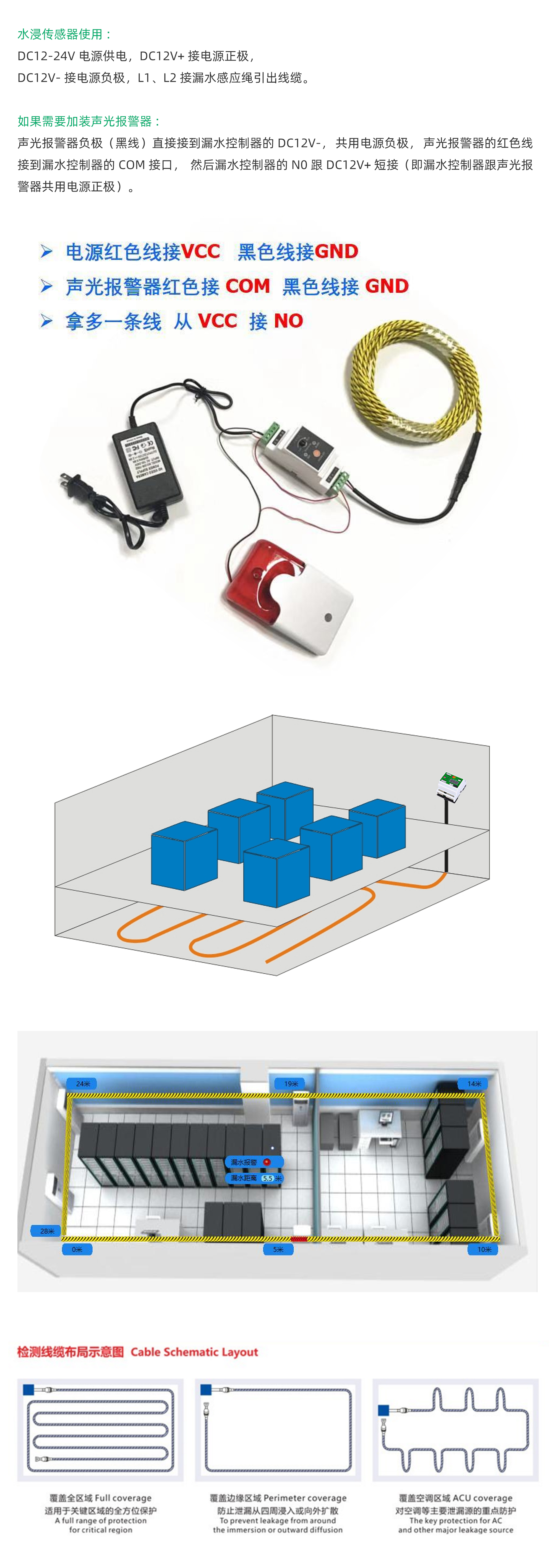水浸傳感器漏水控制器感應(yīng)繩接線(xiàn)與布線(xiàn)方式